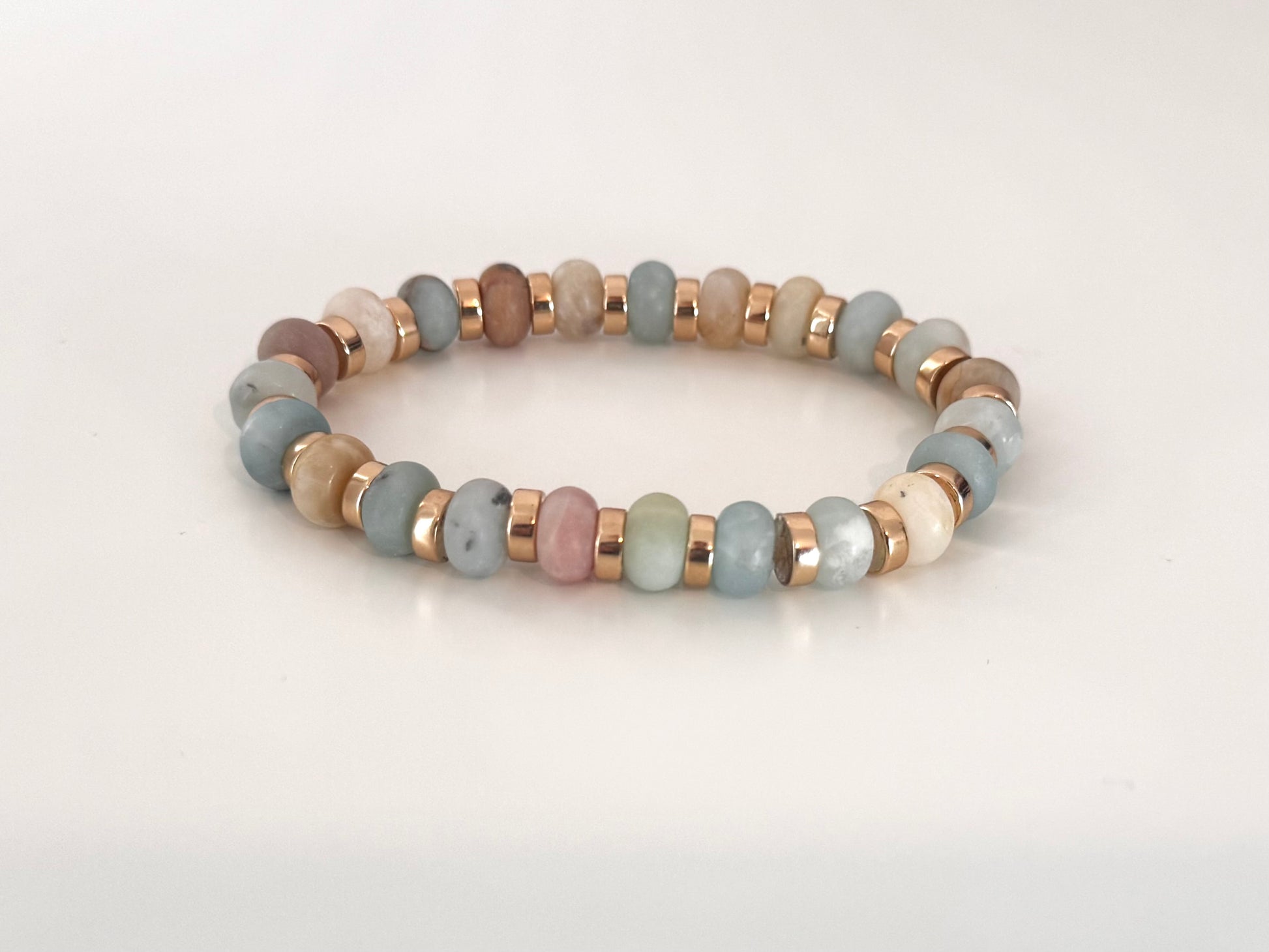 Armbånd på elastik med Amazonit i turkis/grønlige nuancer