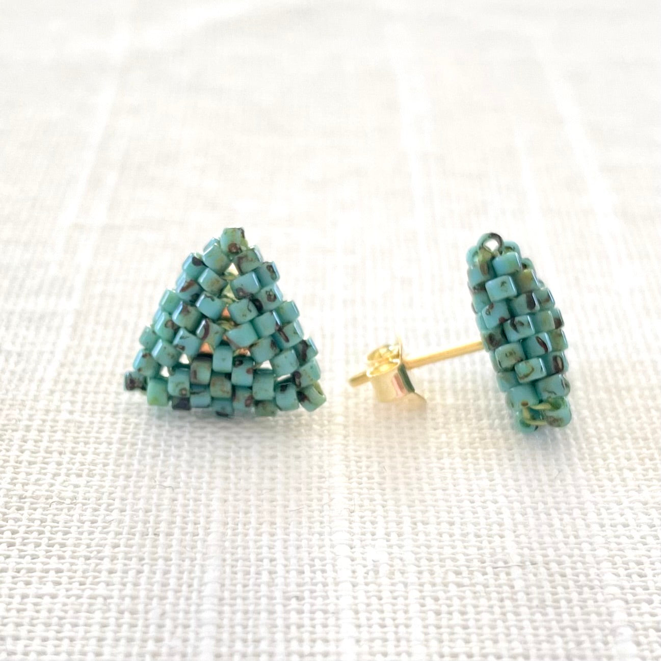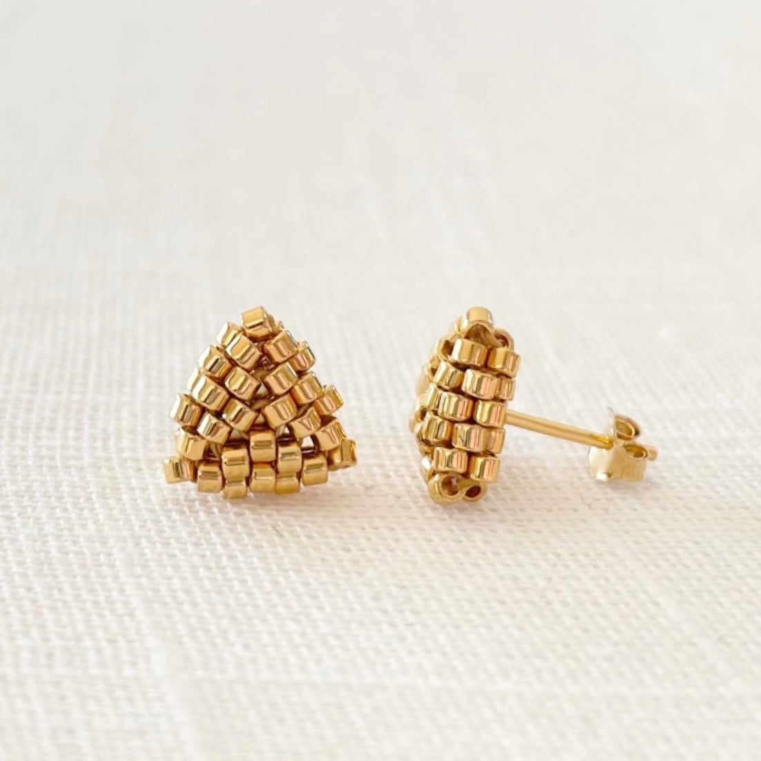 Ørestikkker i 18 karat forgyldt sterlingsølv håndsyet med 24 karat forgyldte Miyuki Delica perler