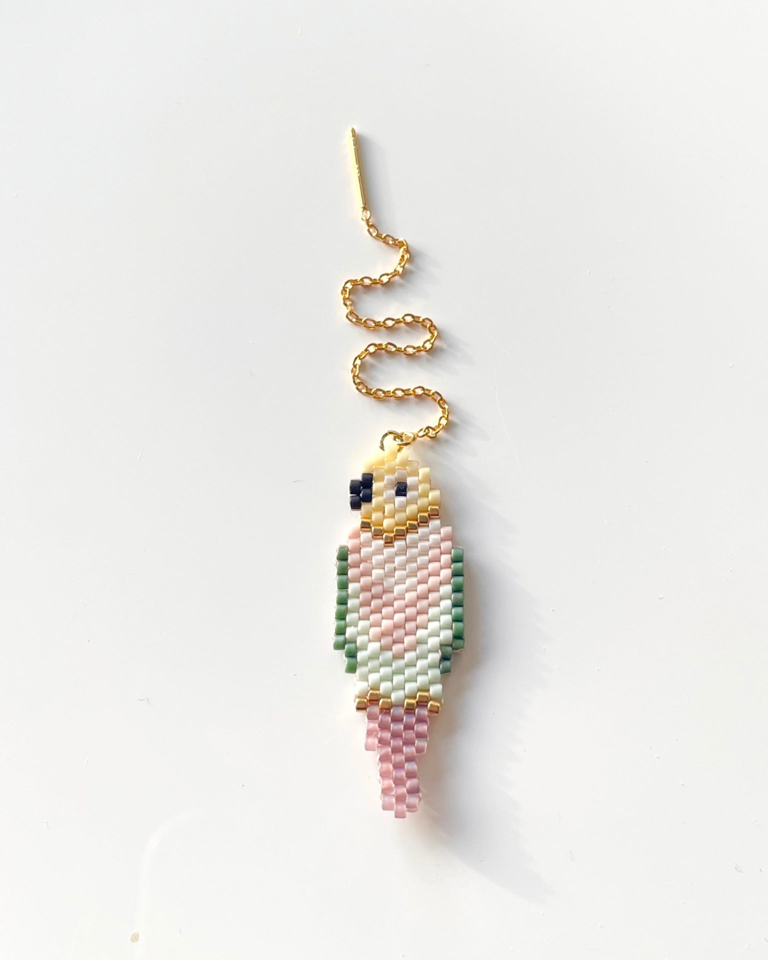 Ørekæde i 18 karat forgyldt sterlingsølv med håndsyet papegøje af Miyuki Delica perler