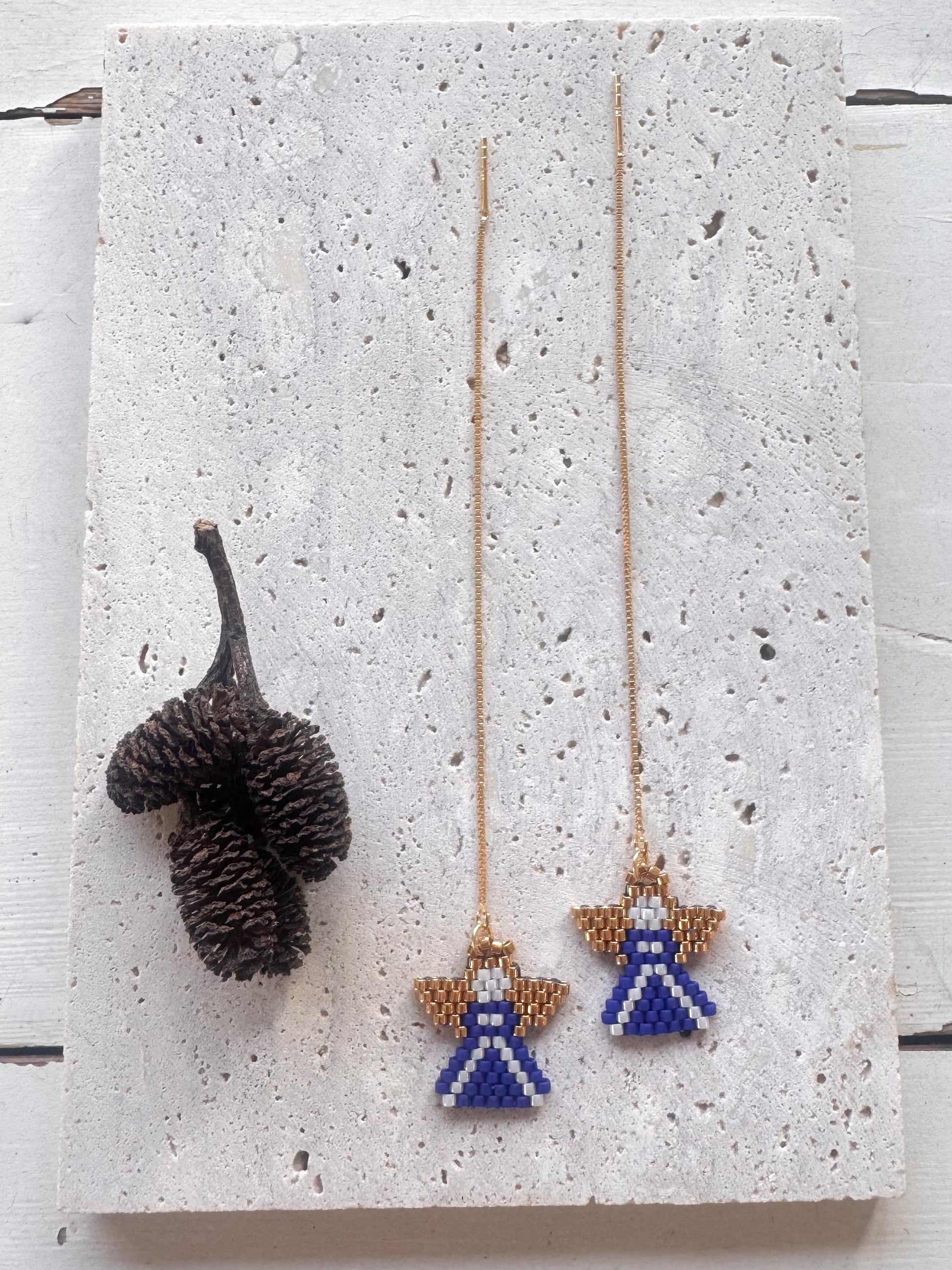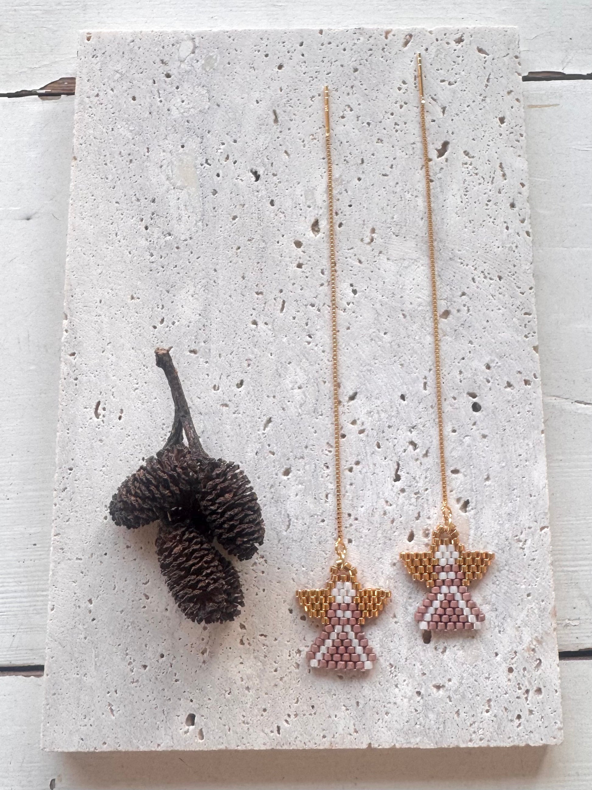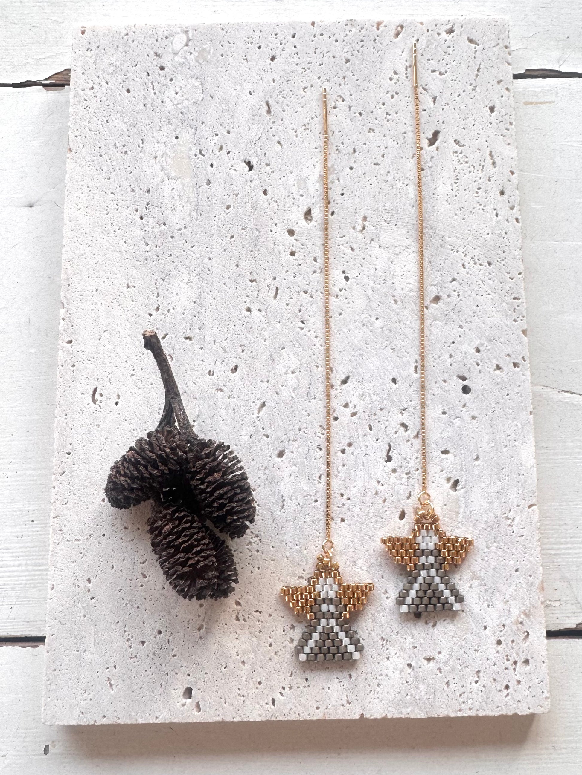 Ørekæder i 18K forgyldt sterlingsølv med håndsyet Miyuki Delica vedhæng.