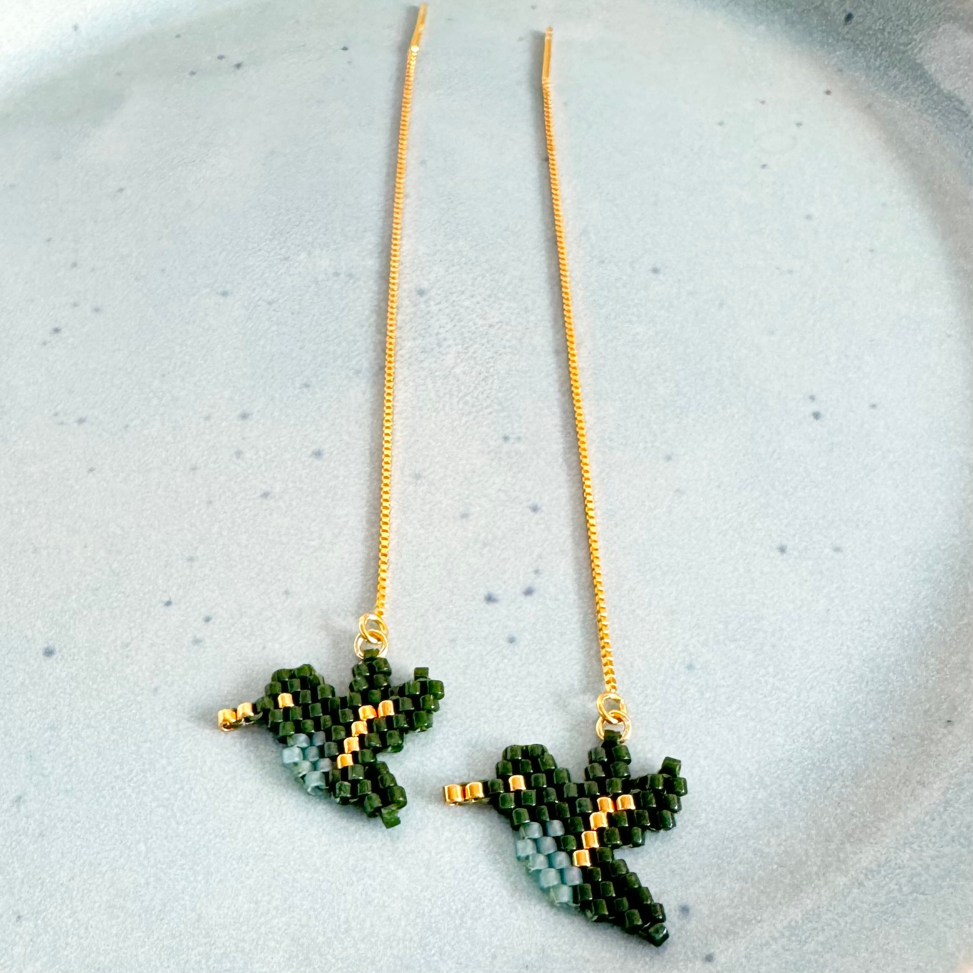 Ørekæder i 18K forgyldt sterlingsølv med håndsyet Miyuki Delica vedhæng.
