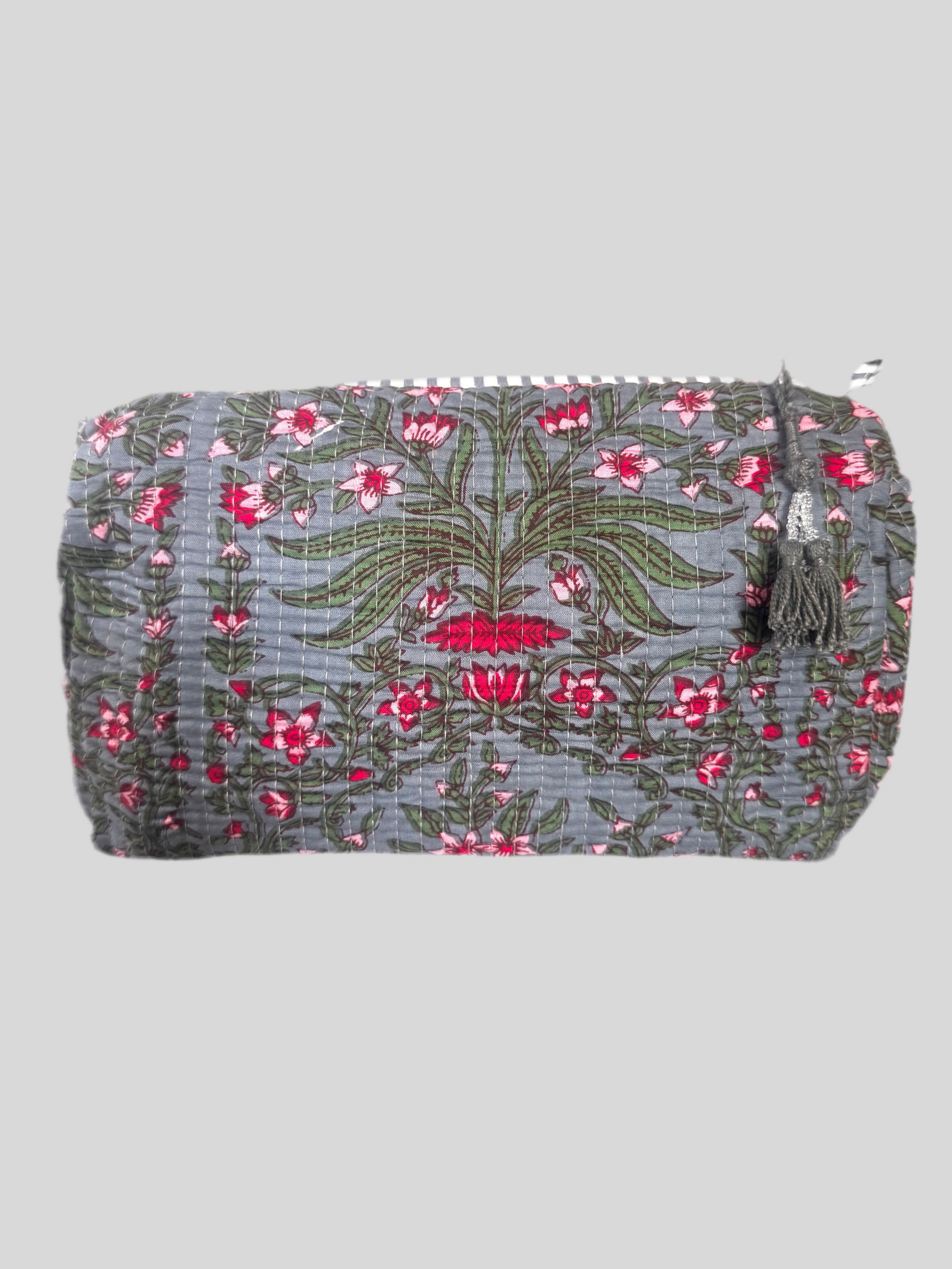 Smuk indisk quiltet kosmetik taske i bomuld.