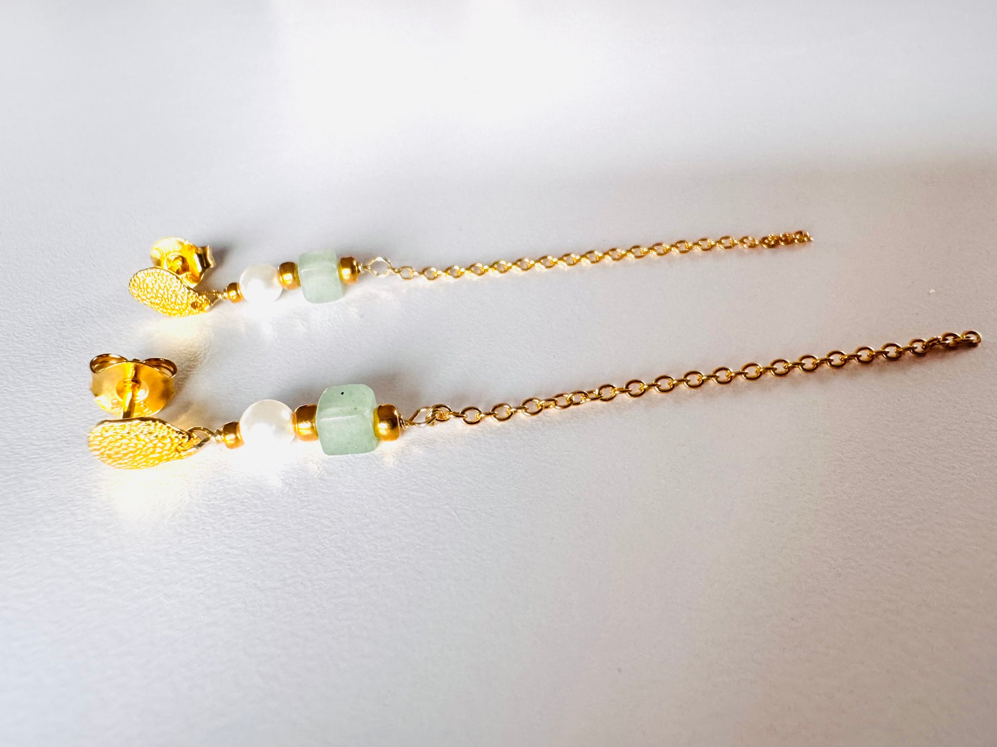 Øreringe i 18 karat forgyldt sterlingsølv & grønne Onyx dråber