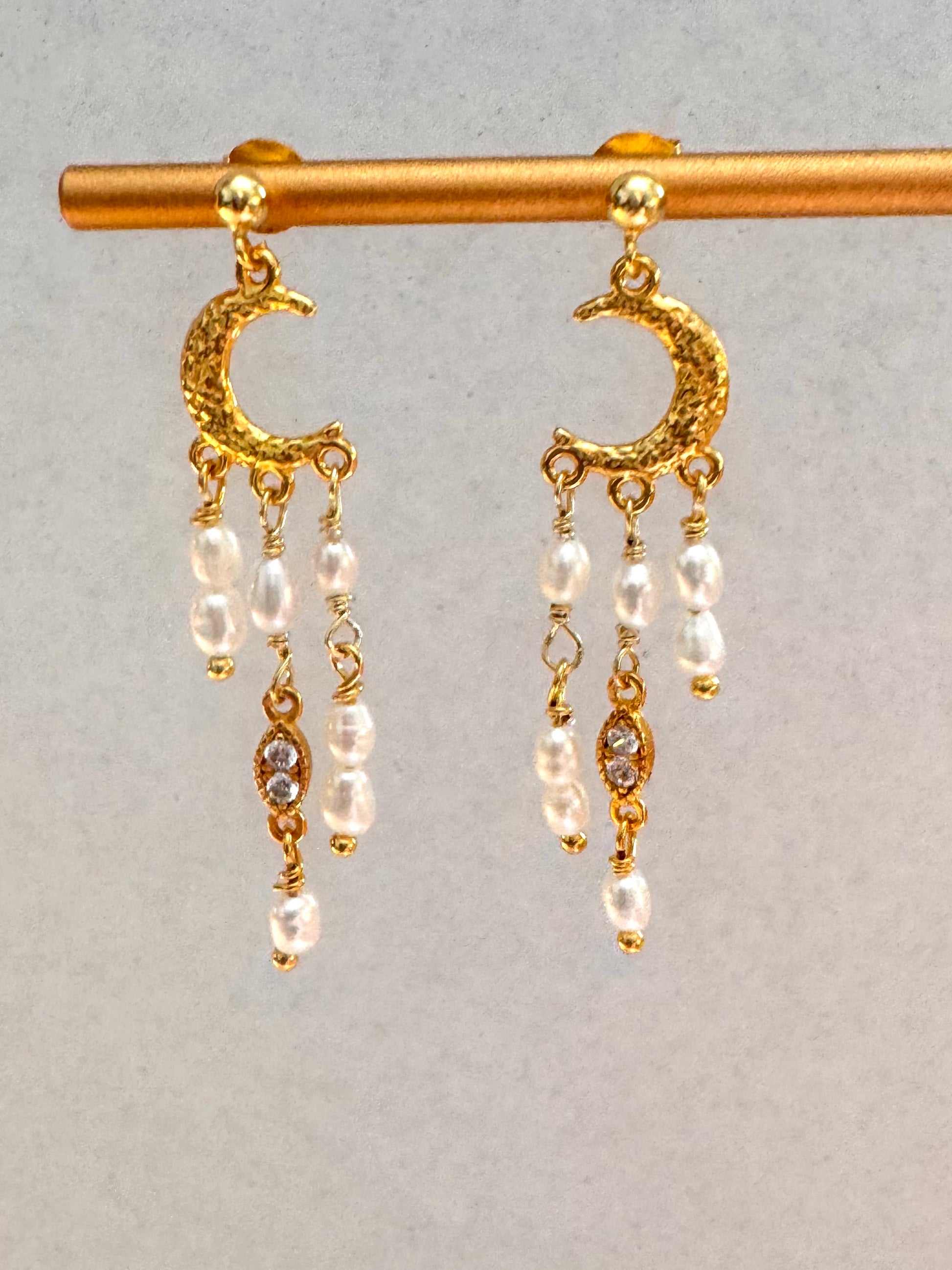 Øreringe i 18K forgyldt sterlingsølv med vedhæng & ferskvandsperler