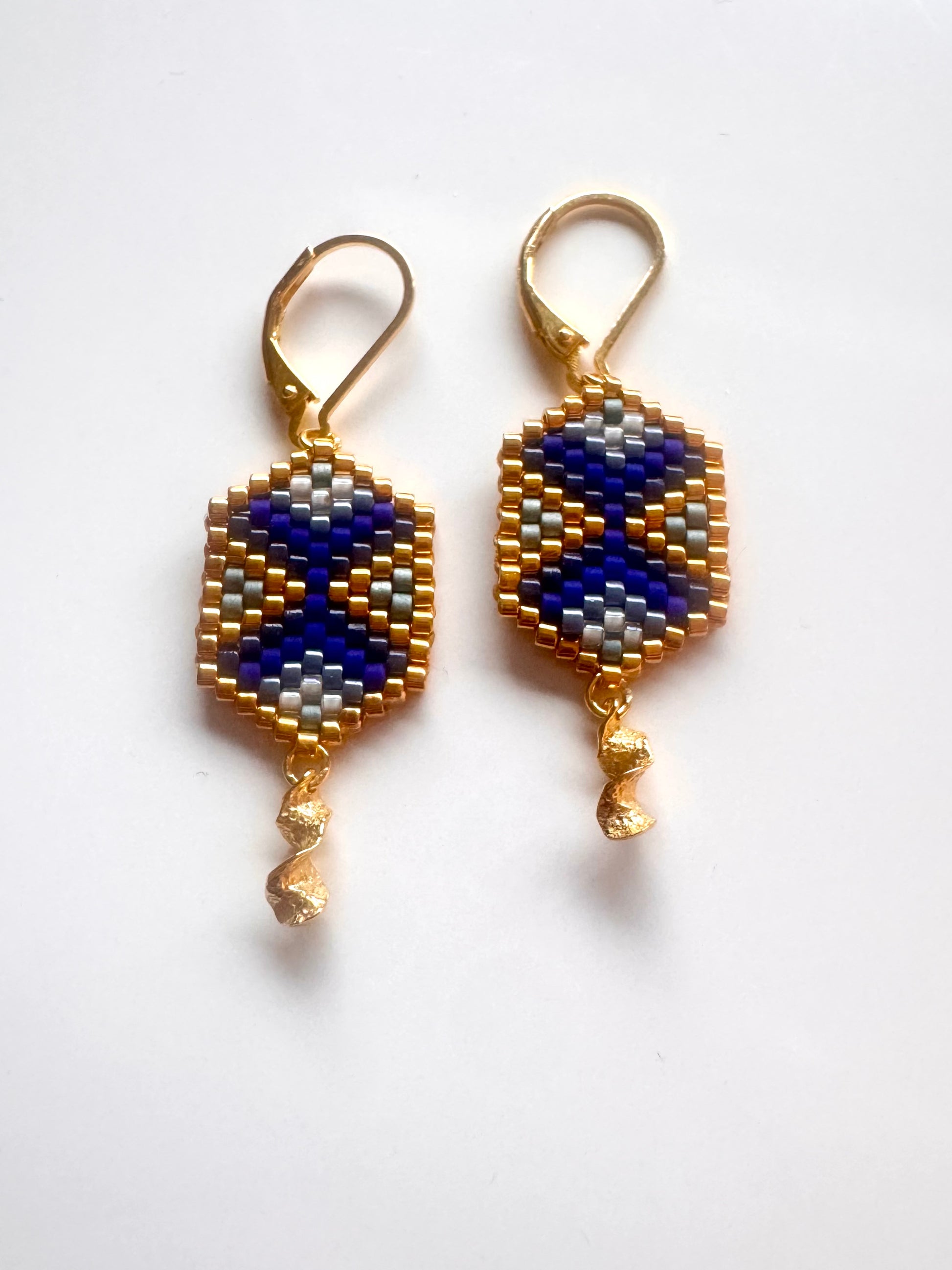 Miyuki Delica perler i blå toner & 24K guldbelagte Miyuki Delica perler & vedhæng i 18 karat forgyldt sterlingsølv