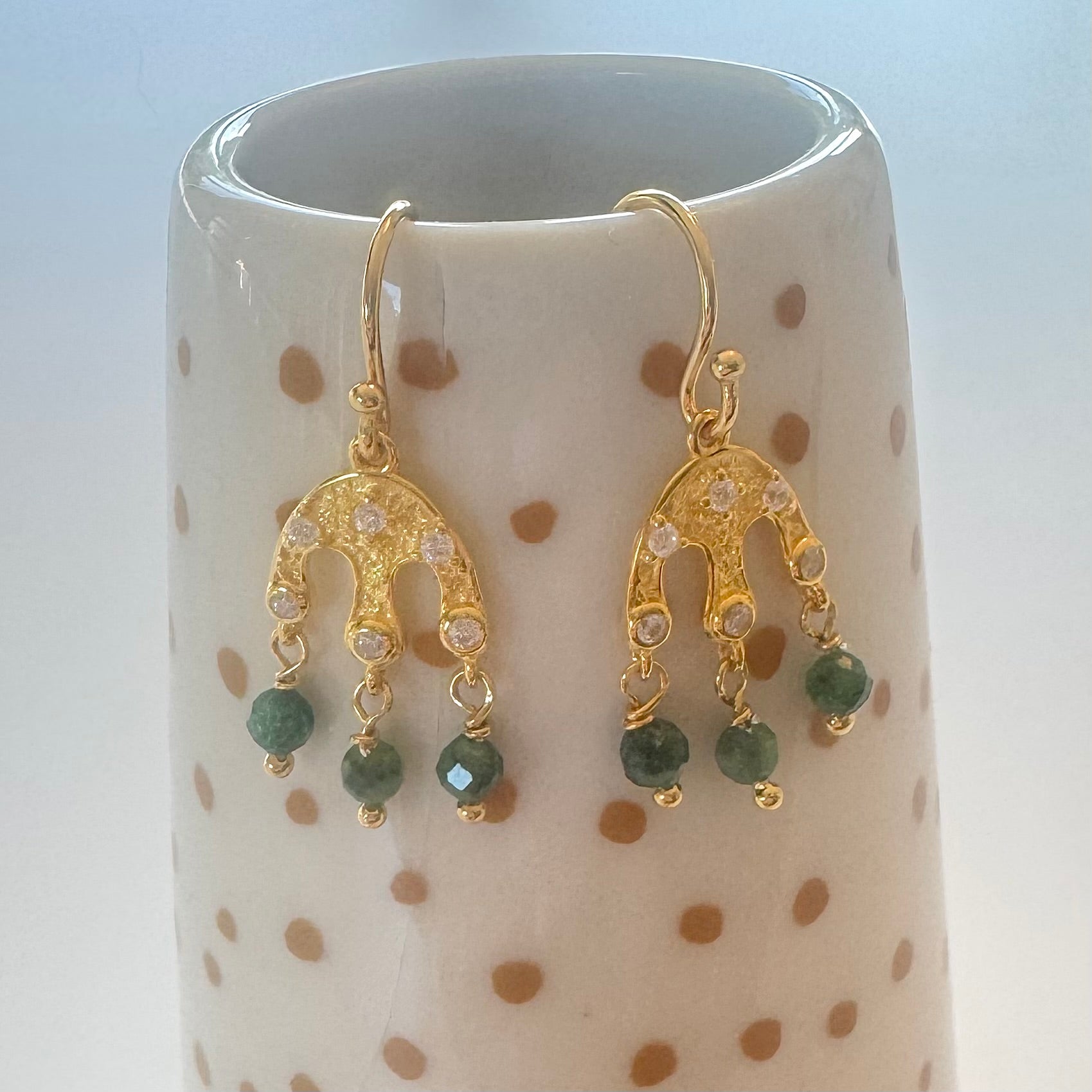 Grønne halvædelsten på ørekroge i 18K forgyldt sterlingsølv