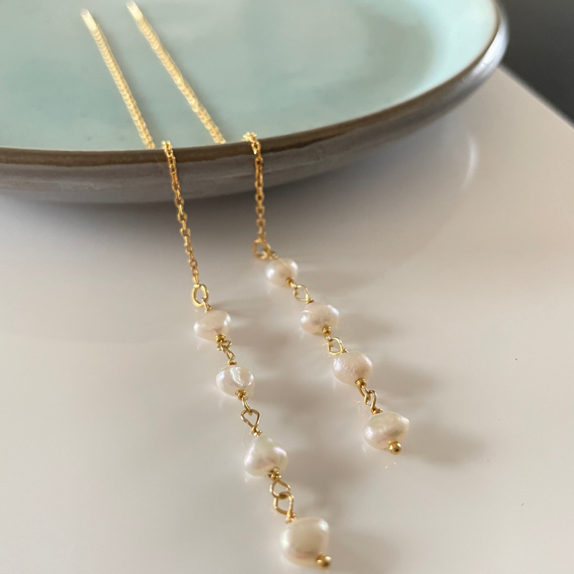 Ørekæder i 18 karat forgyldt sterlingsølv & små ferskvandsperler
