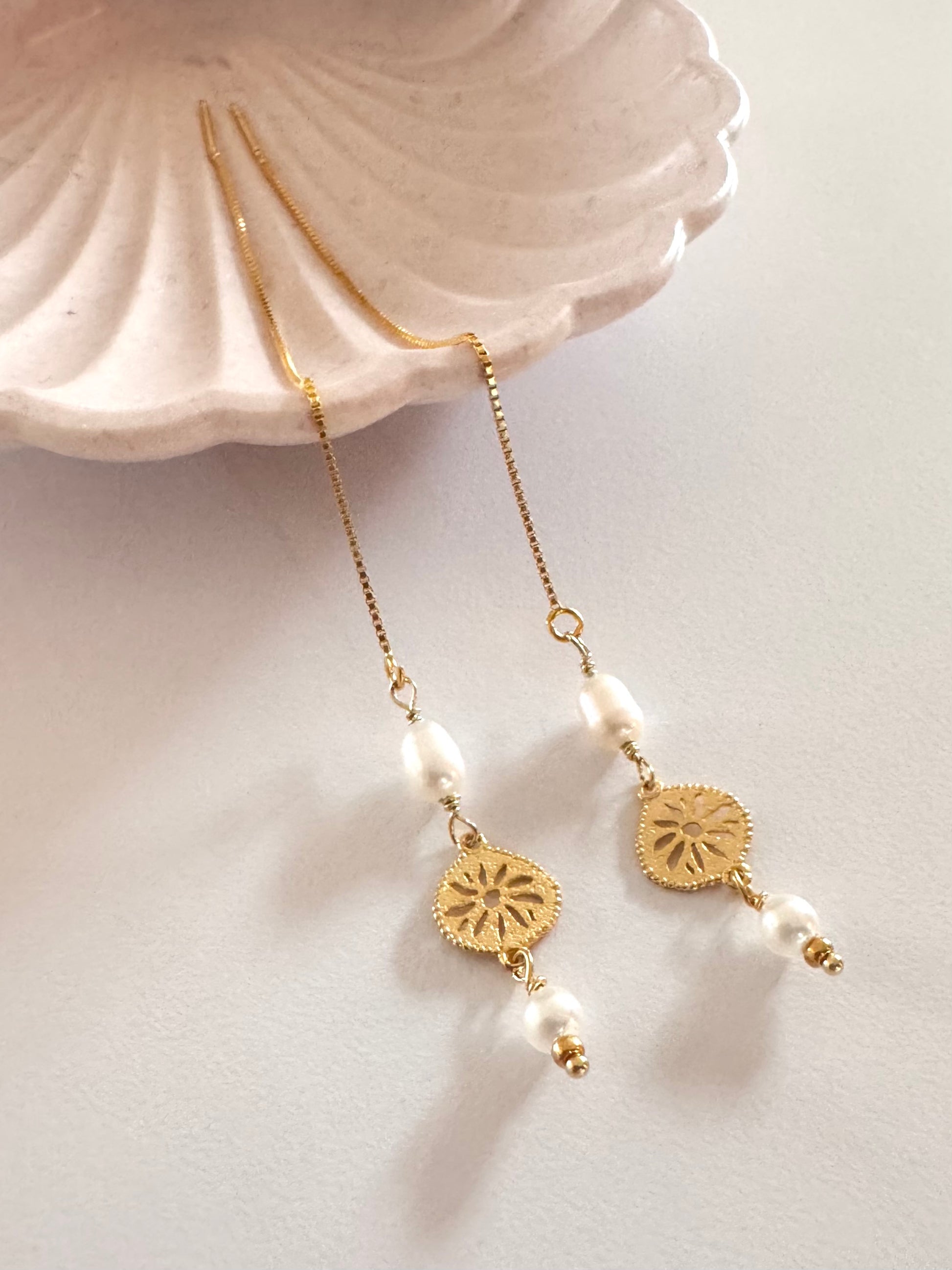 Ørekæder i 18 karat forgyldt sterlingsølv & med små ferskvandsperler