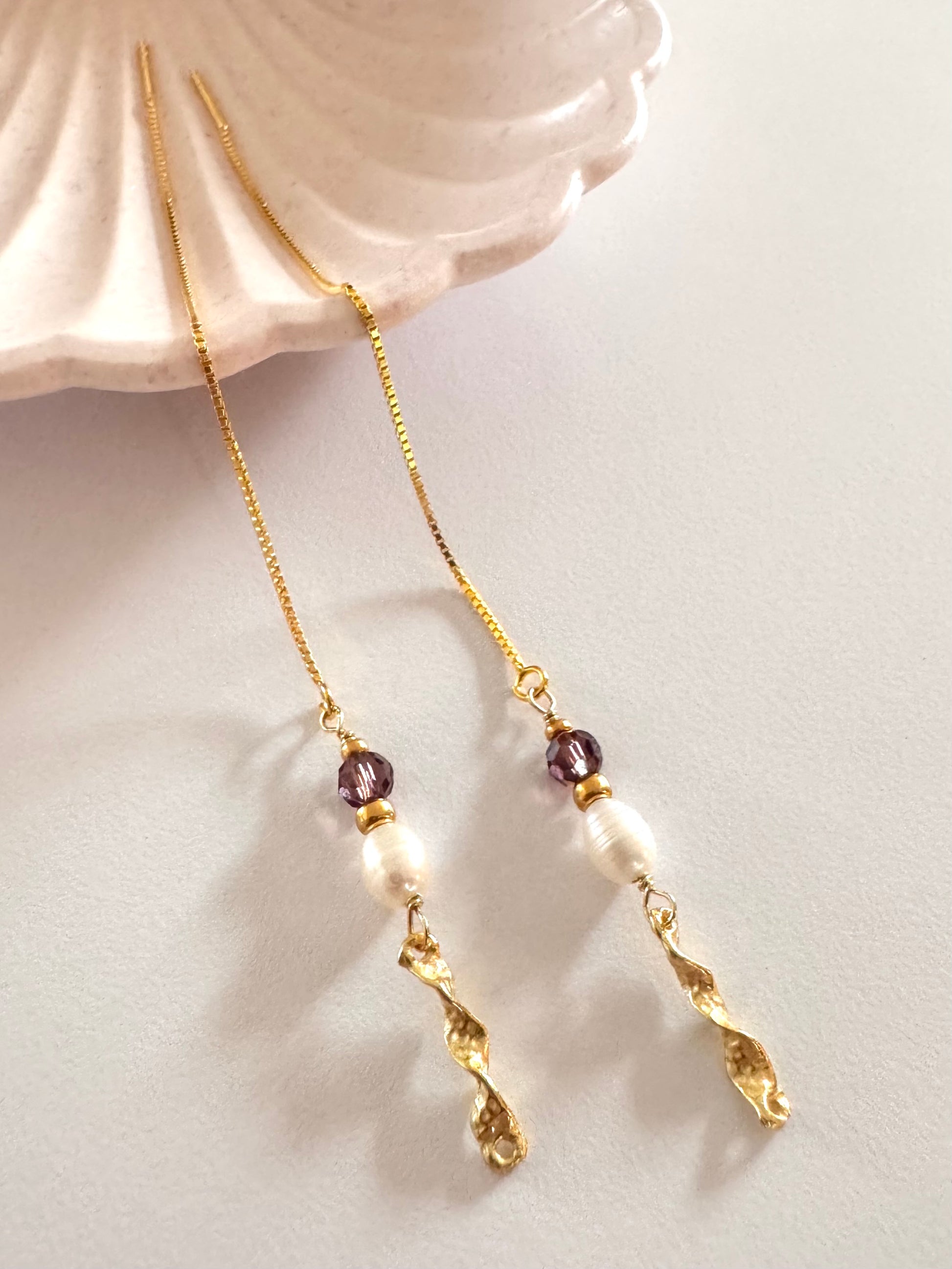 Ørekæder i 18 karat forgyldt sterlingsølv med små ædelsten & ferskvandsperler