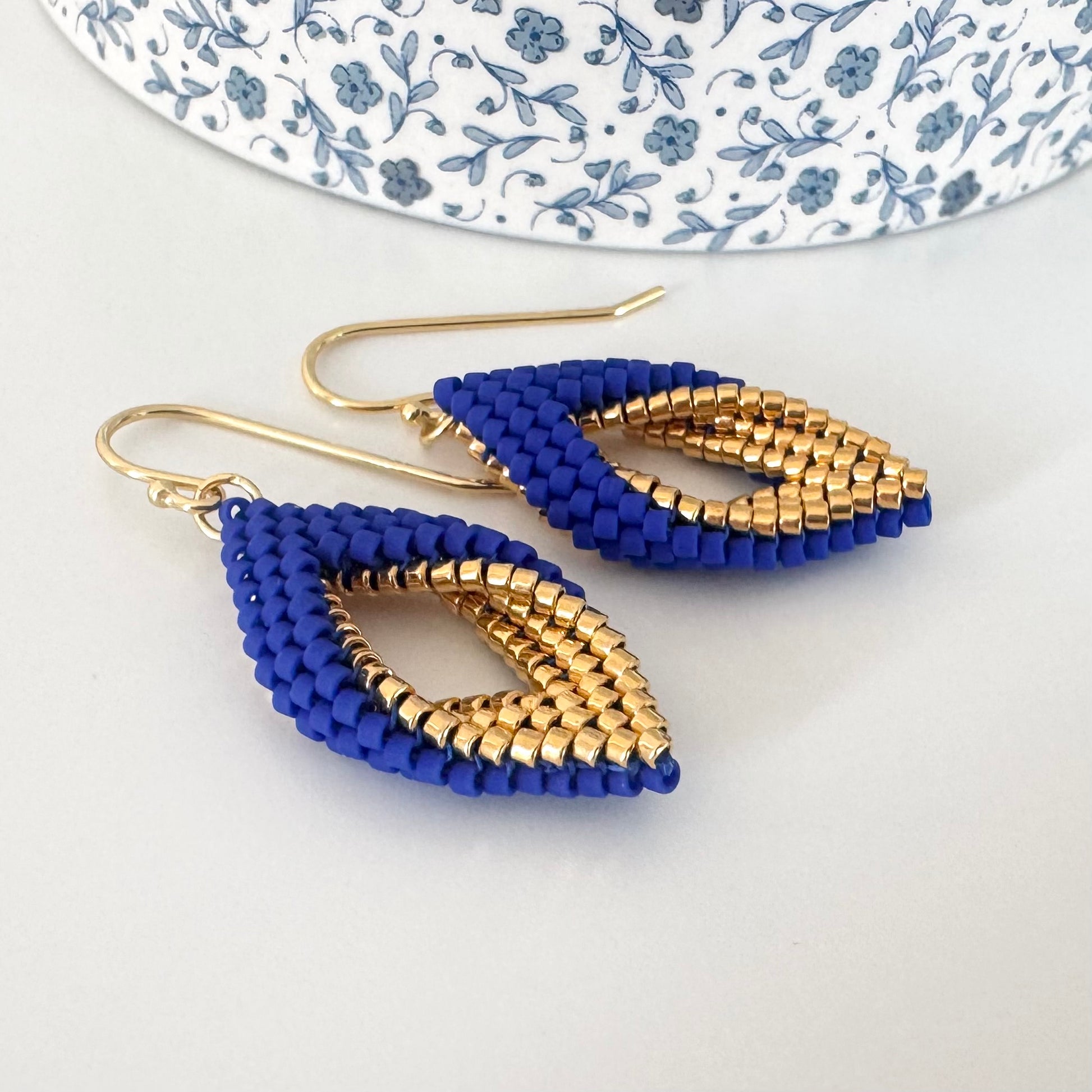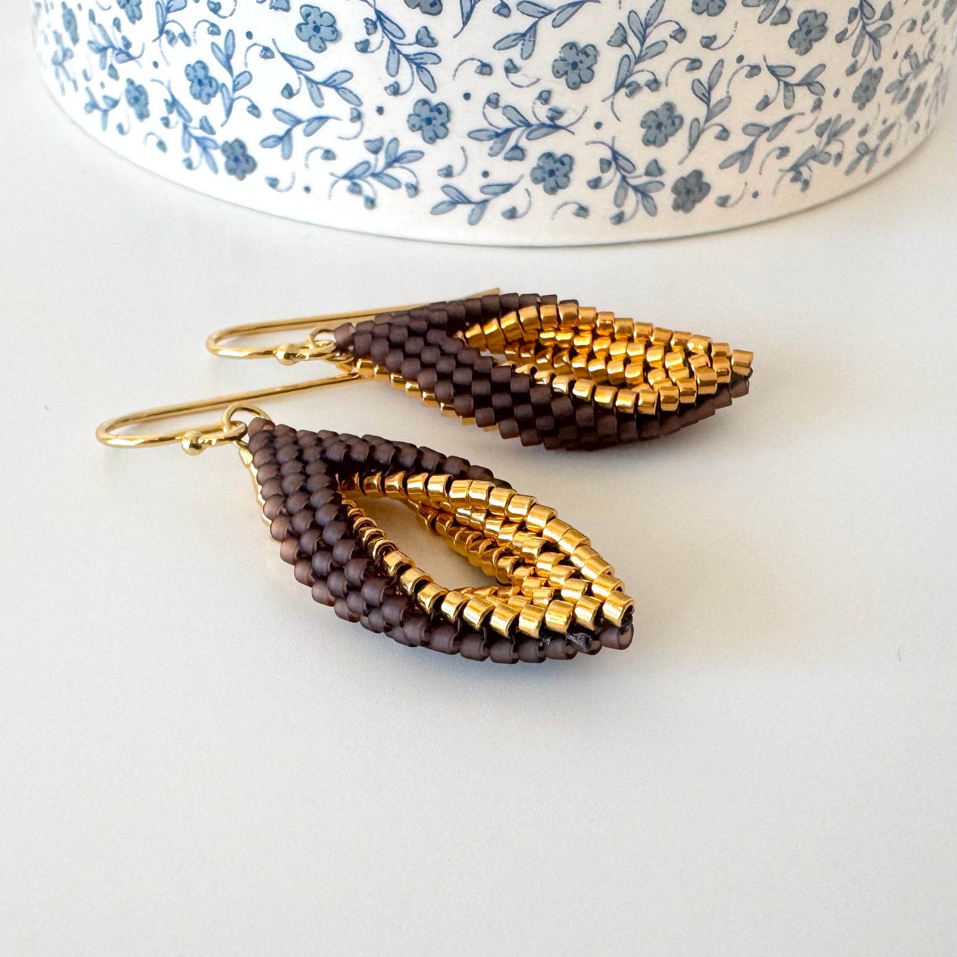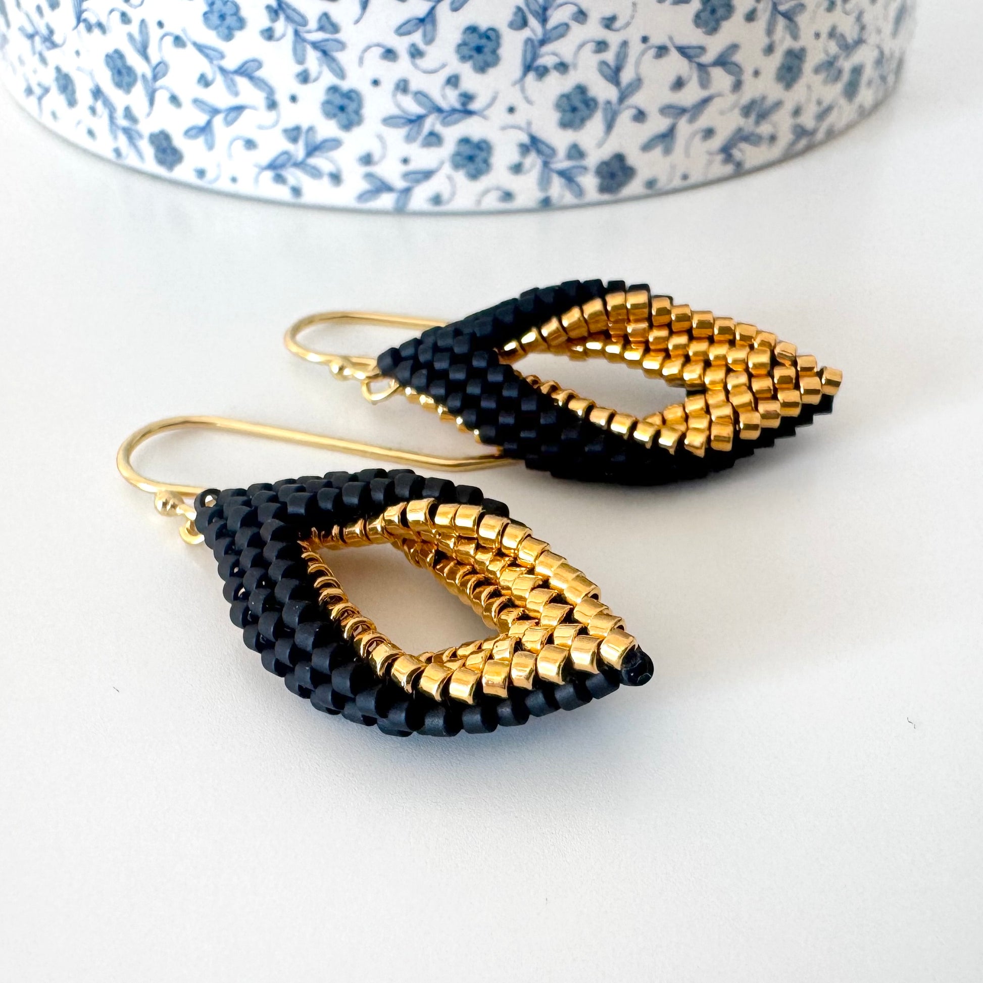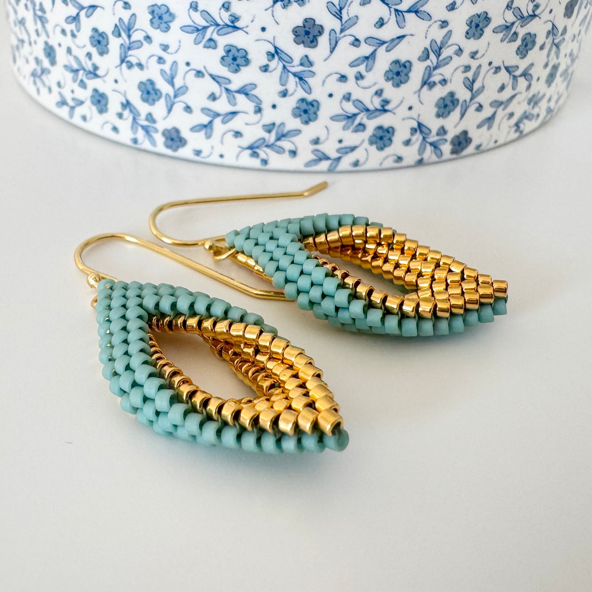 Twist øreringe håndsyede af Miyuki Delica perler & 24K guldbelagte Miyuki Delica perler på ørekroge i 18K forgyldt sterlingsølv