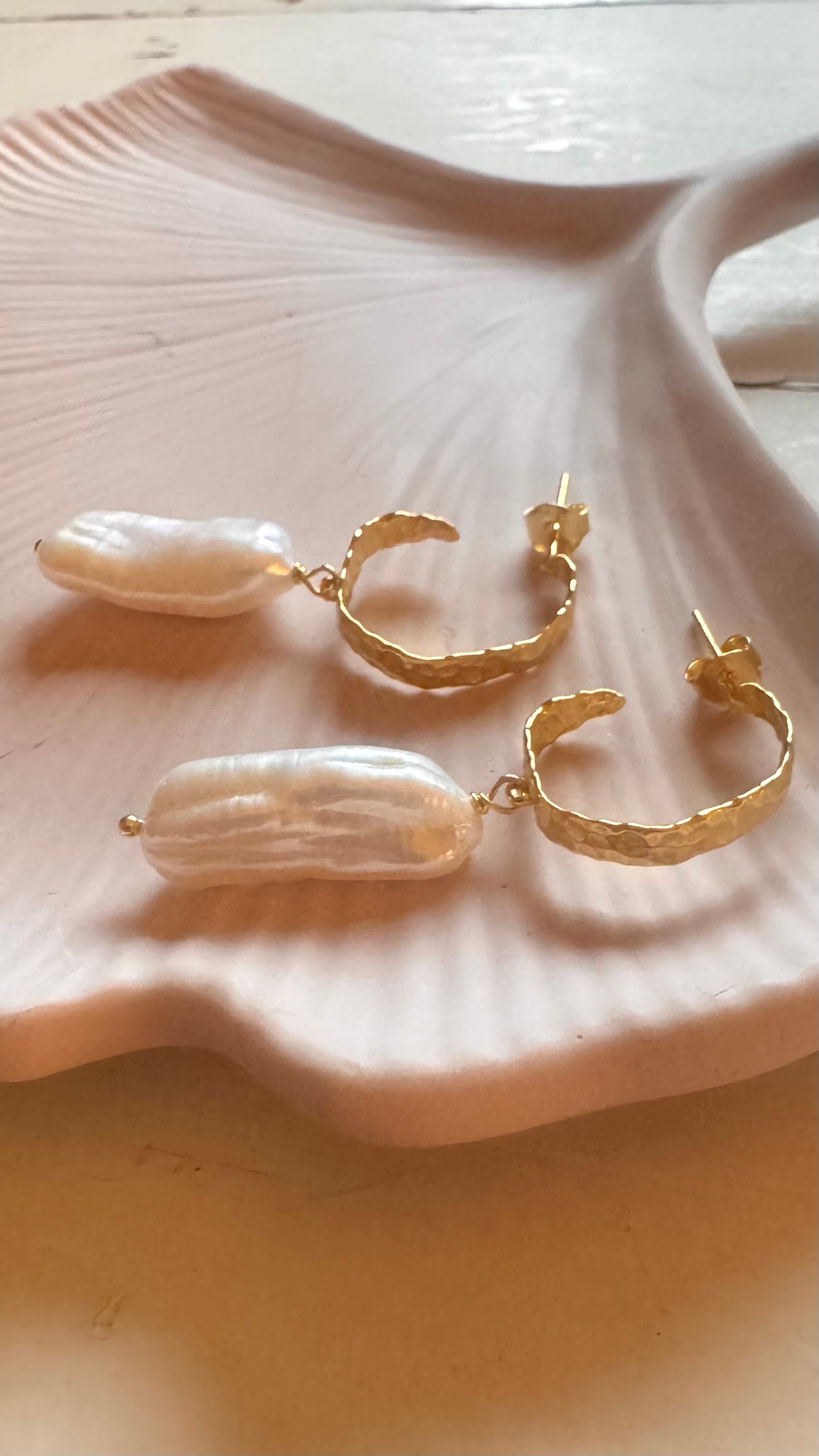 Ørestikker i 18 karat forgyldt sterlingsølv & ferskvandsperler